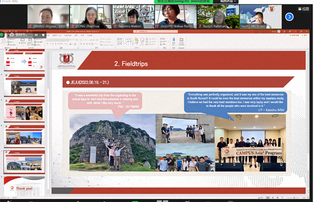 The meeting reviewed the travel of international students in recent months, their field investigations, and joint courses, among other issues. Given that universities from ASEAN countries were included in the 3rd CAMPUS Asia Program, a new cooperation model for universities under the program to exchange students was proposed and followed by a fruitful discussion.