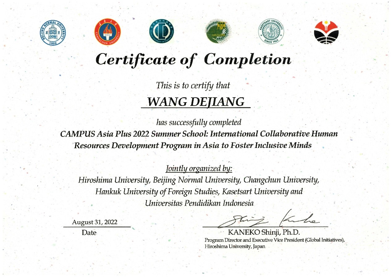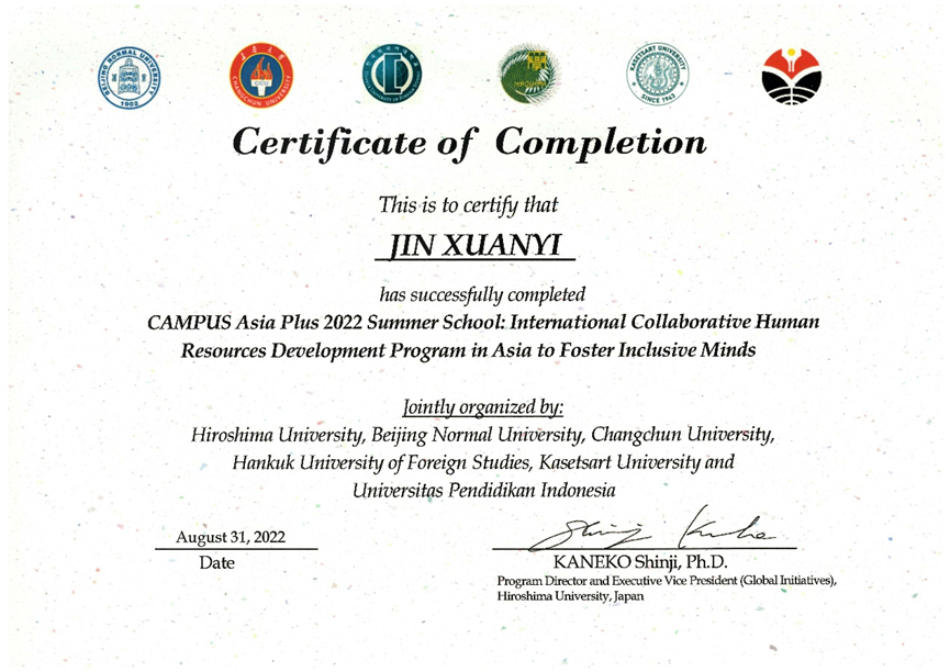 From August 23 to 31, 2022, the CAMPUS Asia Plus 2022 Summer School: International Collaborative Human Resources Development Program in Asia to Foster Inclusive Minds (the Summer School), with online and offline modes combined, was held in Hiroshima University (HU), Japan. Three students from Beijing Normal University (BNU) took part in the Summer School online.